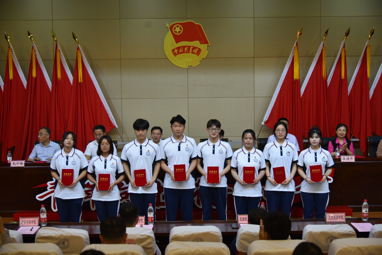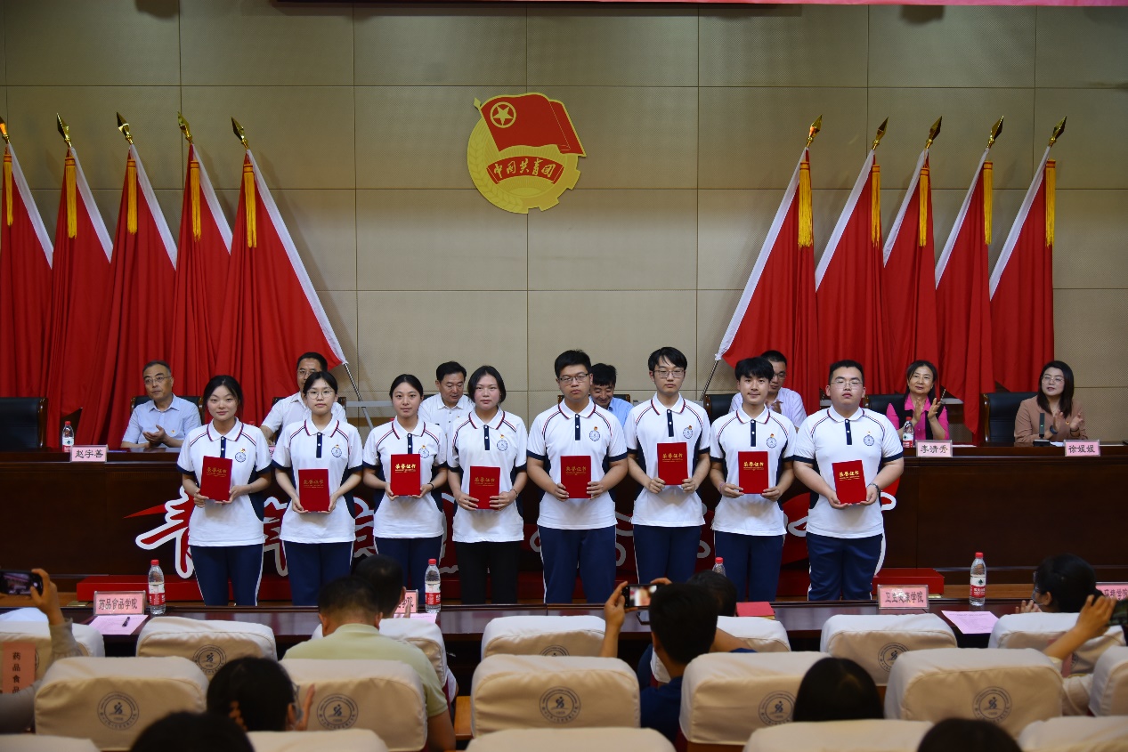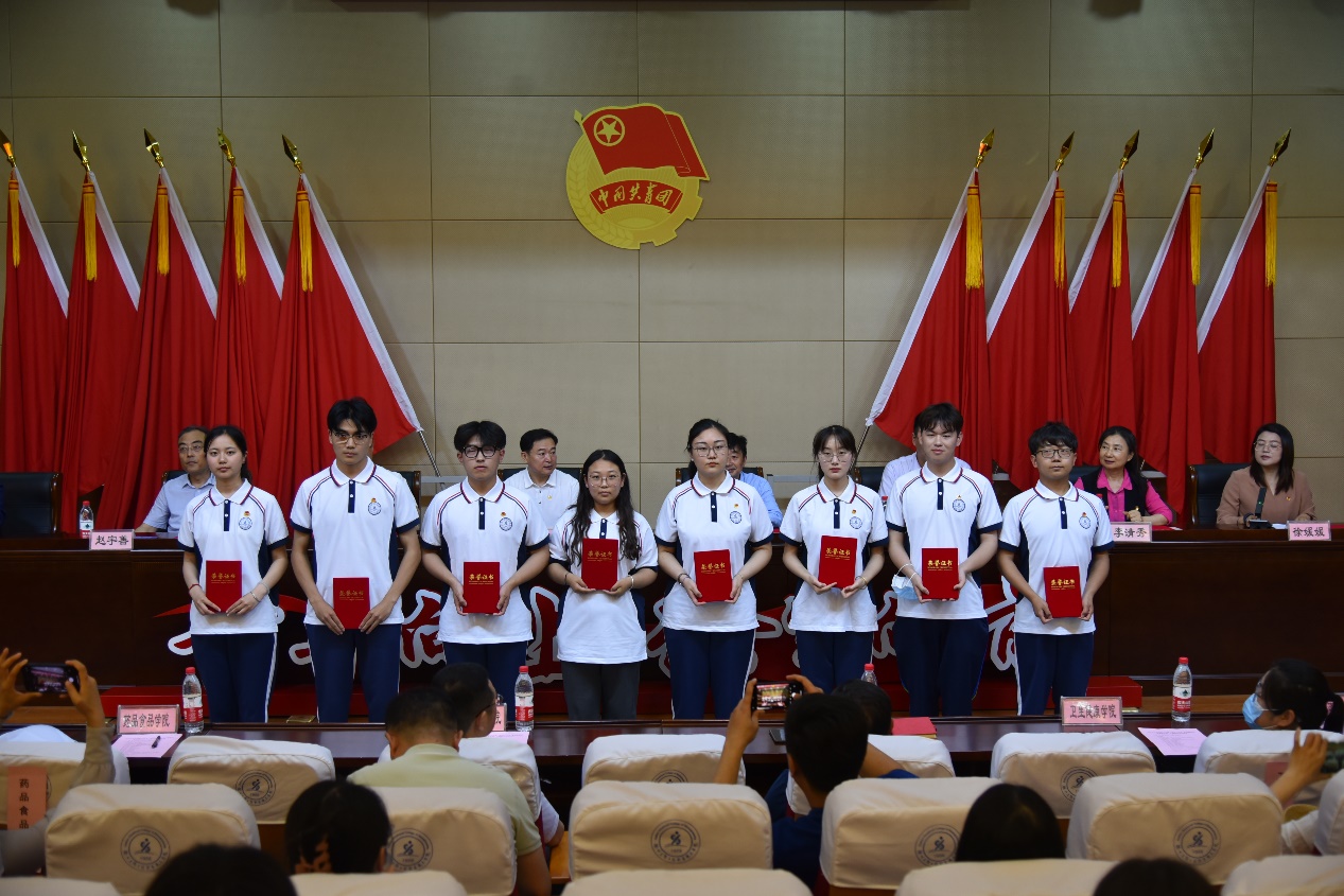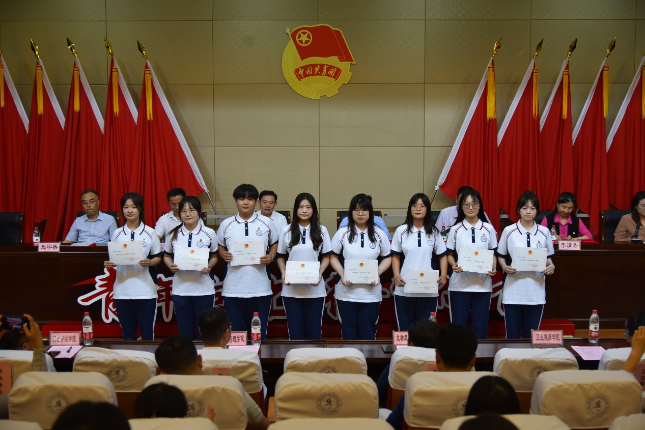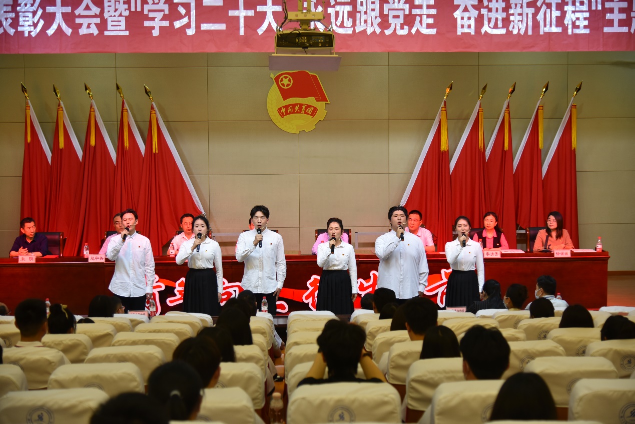 表彰大会在团员青年们满怀热情的掌声和激昂的团歌声中圆满落幕。会后,团学骨干、新团员代表集中举行入团宣誓仪式。
