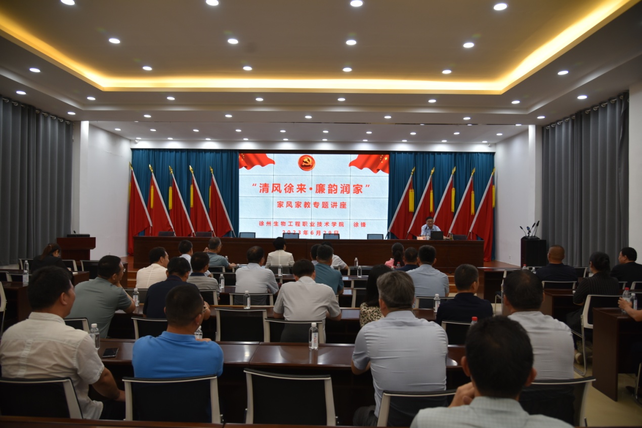 徐锋以《清风徐来·廉韵润家》为主题进行了家风家教专题讲座,重点讲授了家风的内涵与特征、习近平总书记关于家风建设的重要论述,教育引导中层干部自觉把家风建设摆在重要位置,带头廉洁治家,严格家风家教,筑牢反腐倡廉的家庭防线,以纯正家风涵养晴朗党风政风社风。他要求,一要把握家风建设时代意义,自觉带头涵养优良家风;二要常思家风失范现象危害,始终紧绷家庭纪法之弦;三要激发廉洁建设家庭力量,共同筑牢清廉家风屏障。希望大家带头做家风建设的表率,让修身慎行、怀德自重、清廉自守成为家庭的“底色”,用良好家风助推各项工作高质量发展,为全面推进中国式现代化徐州新实践贡献家风力量!