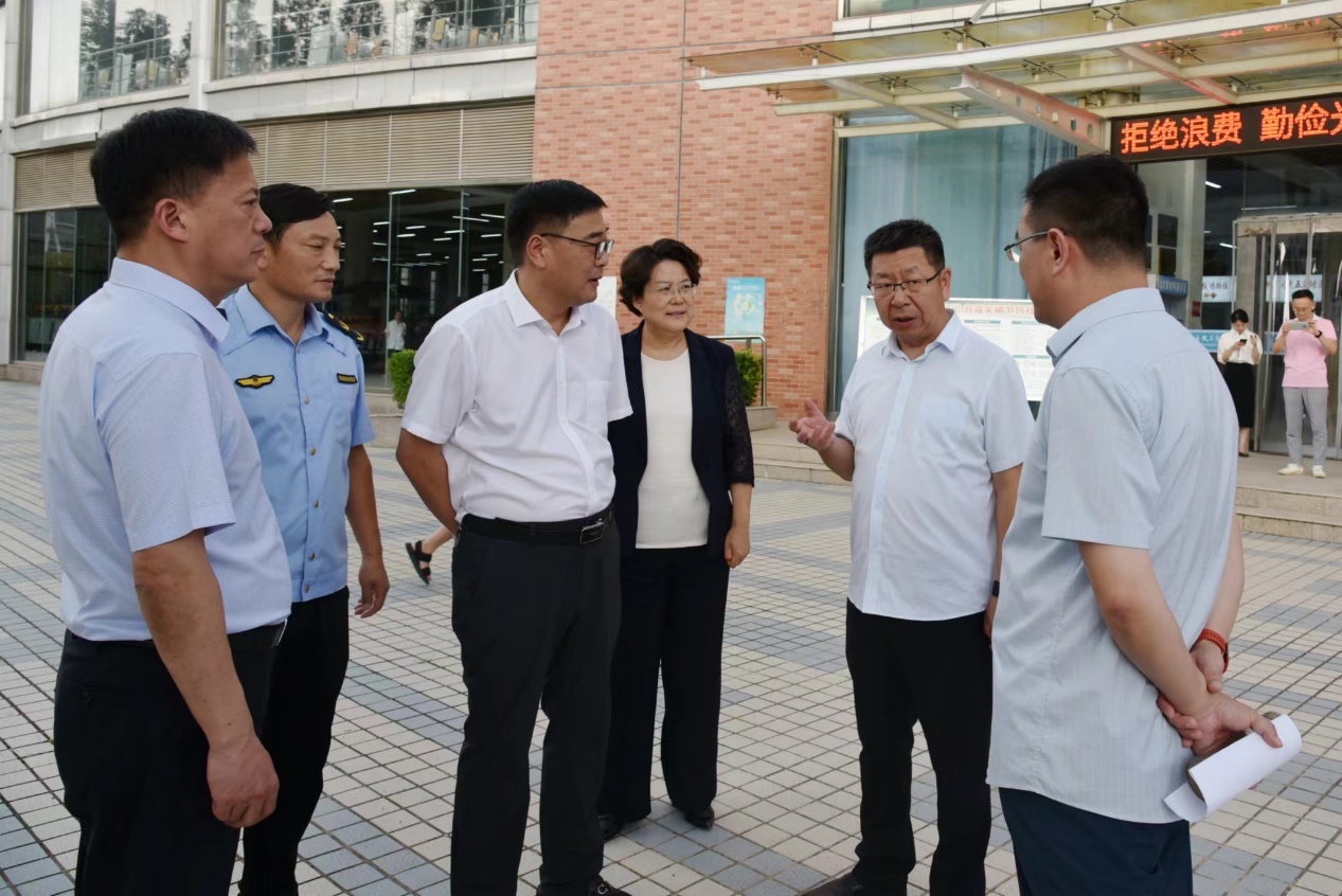 2023年8月17日,徐州市副市长钟卫华带队到我校开展调研活动,视察扩建工程项目进展情况,检查指导食品安全工作。