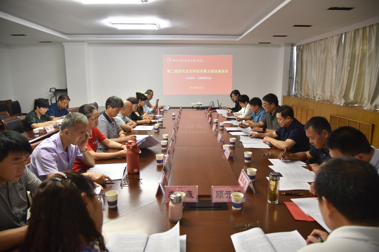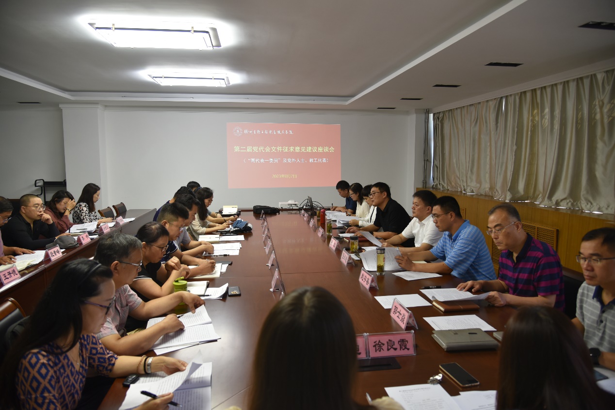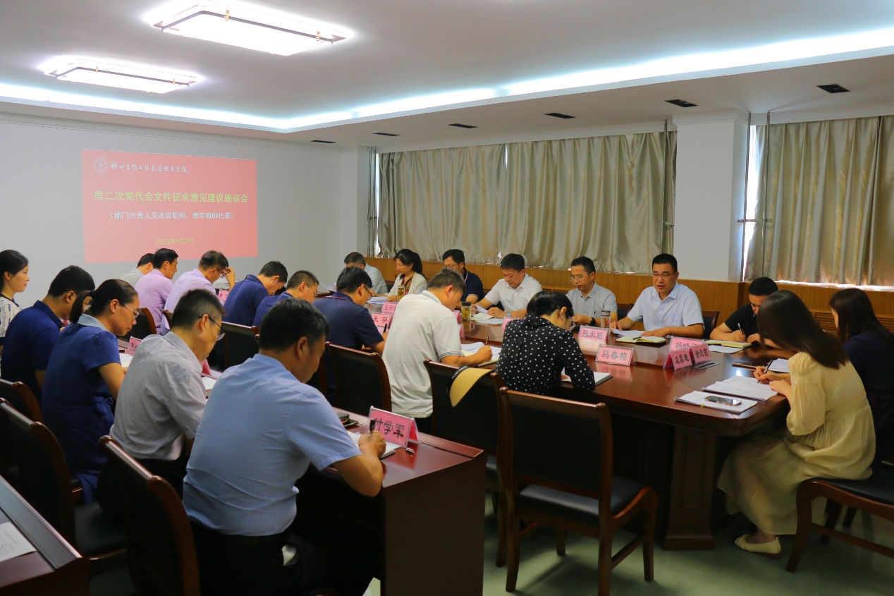 9月7日、8日,学院党委书记徐锋、校长张军先后主持召开“两代表一委员”及党外人士和教工代表、部门负责人及高级职称和青年教师代表、老领导老教师代表座谈会,征求对《鼓昂扬之气 聚奋进之力 全面开启特色鲜明优势突出区域高职名校建设新征程——在中共徐州生物工程职业技术学院第二次党员代表大会上的报告(征求意见稿)》(以下简称《征求意见稿》)的意见建议。党委班子成员列席会议。