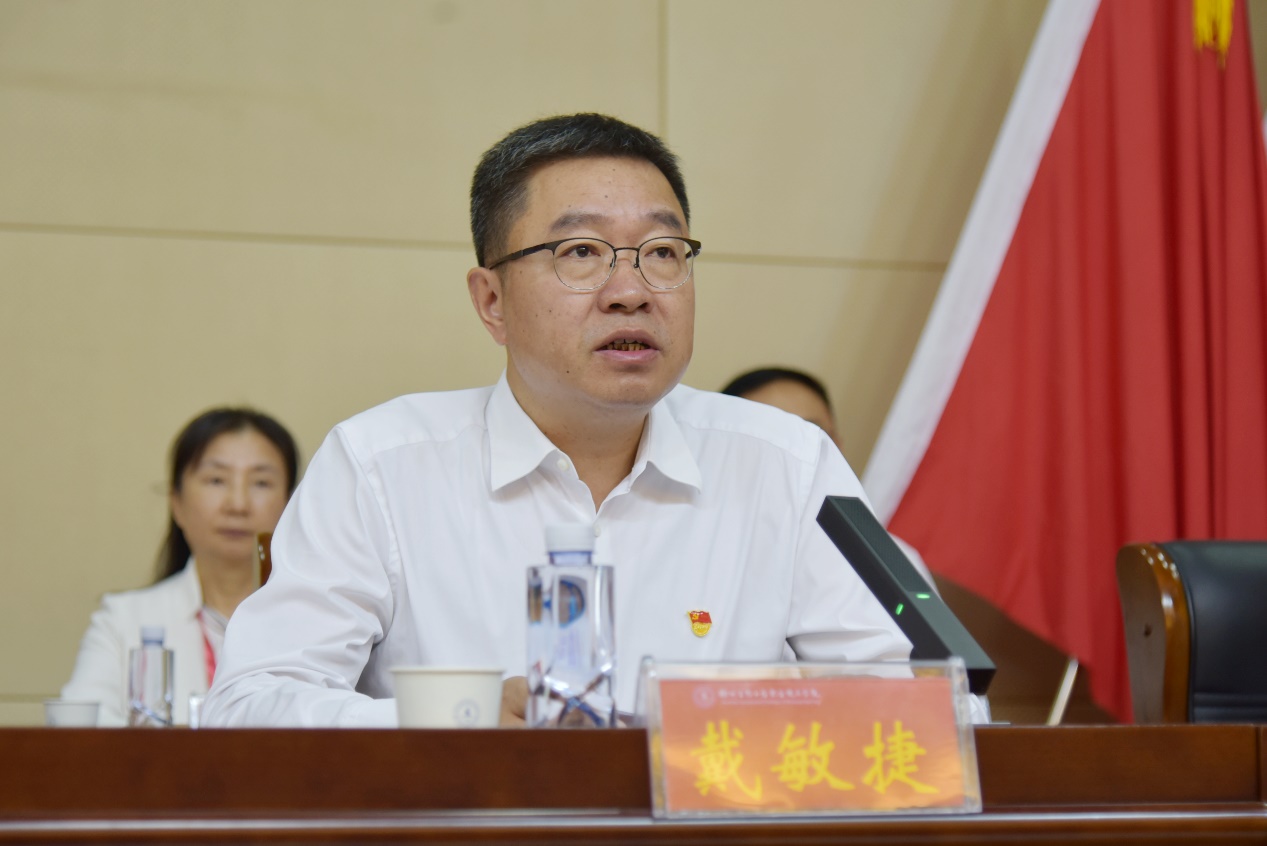 戴敏捷在讲话中代表市委对大会的召开表示热烈的祝贺,对我校第一次党员代表大会以来取得的成绩以及为徐州经济社会发展作出的贡献给予了充分肯定。对学校即将产生的新一届党委班子提出四点希望和要求:一要持续深入学习贯彻习近平新时代中国特色社会主义思想,精心组织开展好第二批主题教育,确保学校各项事业始终沿着正确方向阔步前进。二要牢牢把握立德树人根本任务,全面贯彻党的教育方针,坚持社会主义办学方向,牢记“为党育人、为国育才”初心使命,全力培养更多有理想、敢担当、能吃苦、肯奋斗的新时代好青年。三要紧紧围绕“343”创新产业集群发展需求,主动对接生物医药和大健康产业,为淮海经济区中心城市建设贡献更多智慧与更大力量。四要着力优化完善学校党组织设置,持续加强领导班子和干部队伍建设,加大优秀年轻干部培养选拔力度。严格落实中央八项规定精神,着力营造风清气正、干事创业的良好政治生态。