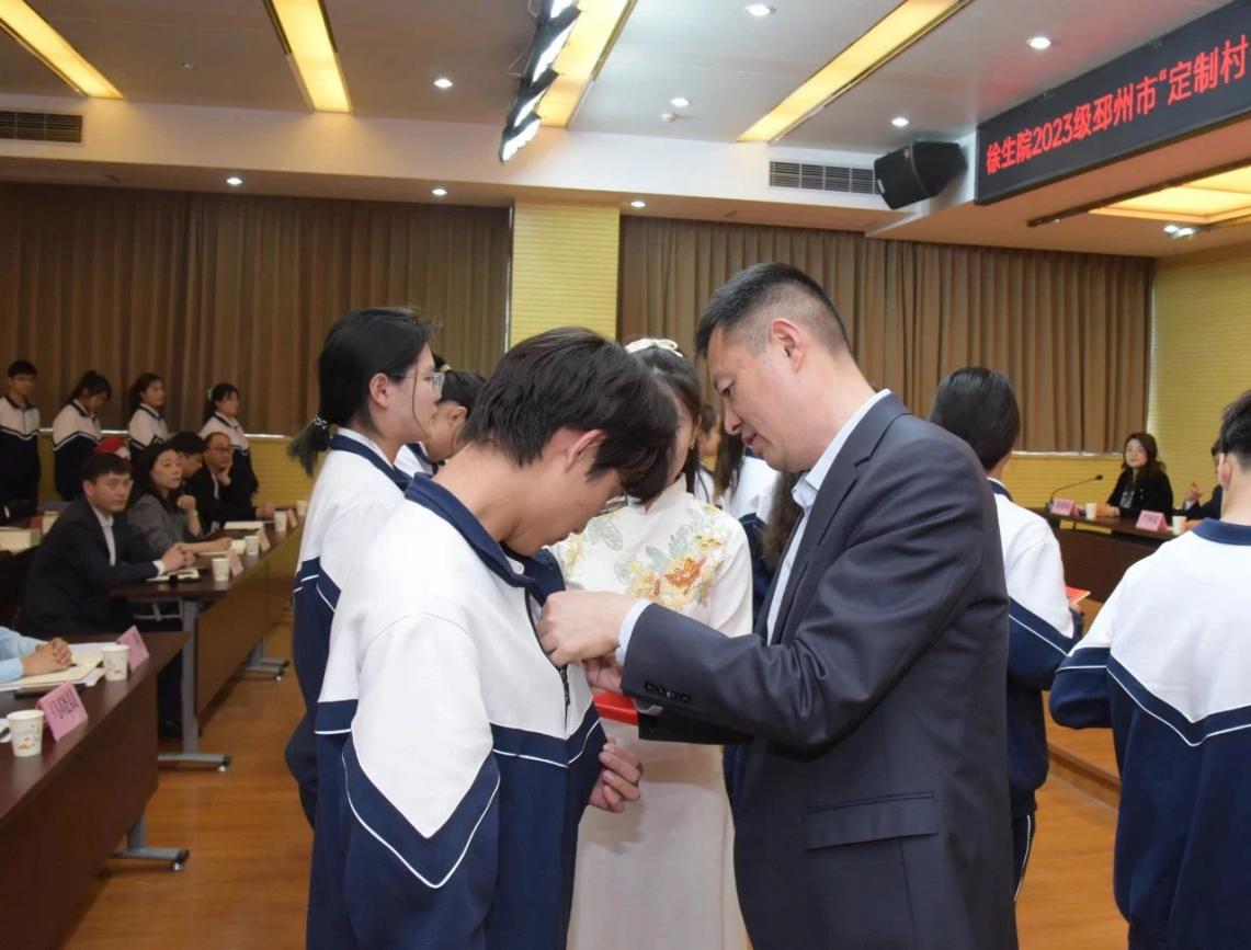 为进一步传承和弘扬五四精神,切实增强团员先进性、光荣感和使命感,为乡村振兴提供坚实组织保证和人才支撑,4月28日,2023级邳州“定制村干”班团支部新团员入团仪式在我校举行。团委书记徐媛媛宣读了12名新团员名单。党委书记徐锋,邳州市委常委、组织部部长杨毅,逐一为新团员颁发团徽徽章和团员证。新团员代表时晗和优秀团员代表李淑芬分别发言。