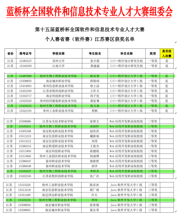 我校在第十五届蓝桥杯软件大赛江苏赛区比赛中喜获佳绩